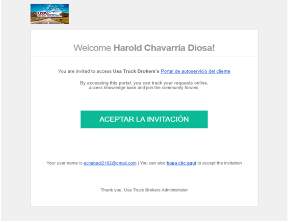 2- Recibirá un email de creación de ticket y otro de invitación al portal. Esto puede tardar unos minutos.